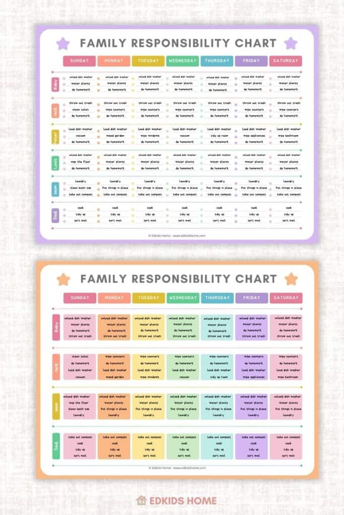 Family Responsibility Chart: English & Bilingual Chinese